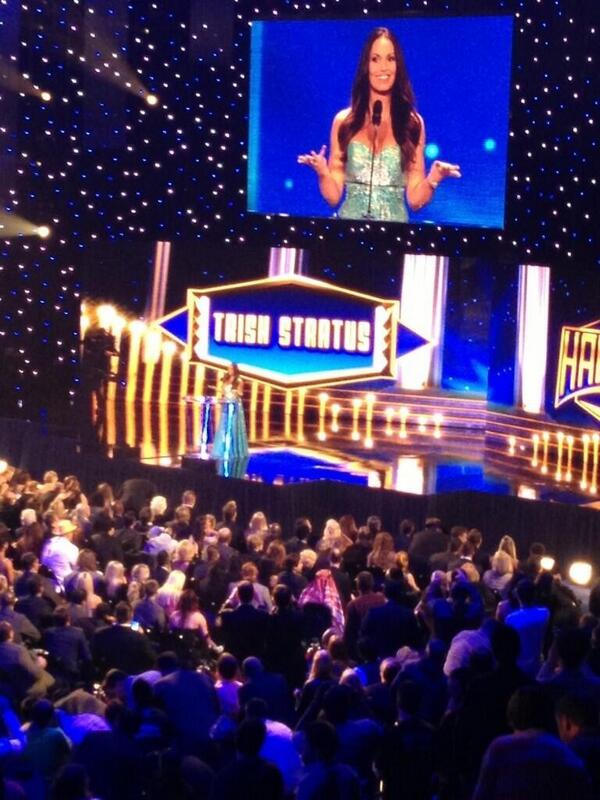 During her WWE Hall Of Fame acceptance speech Trish Stratus announced she is pregnant and expecting in September. Her husband, Ron, got MASSIVE heat.