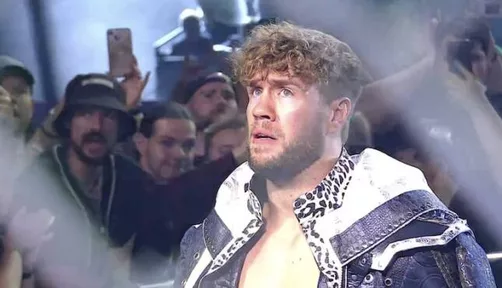 From there, his music hits. He soaks in the atmosphere and as it seemed the show was wrapping up, including the copyright graphic flashing on the screen, we see chaos ensue, as Jon Moxley and The Death Riders sneak-attack Ospreay.