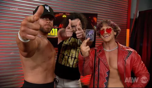 On Saturday’s episode of AEW Collision, the group added a new member during a backstage promo. Austin Gunn and Juice Robinson reflected on their recent struggles and made it clear that some backup was needed. Robinson teased that their answer might come from the past, calling it a pairing that many would consider inevitable.