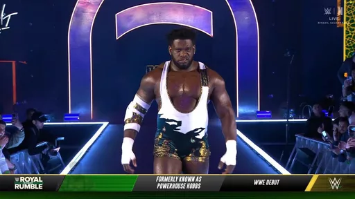 Speculation heading into the event proved accurate when Hobbs entered the Royal Rumble match as entrant number 14. As the countdown reached zero, the entrance graphics initially displayed his well known Powerhouse Hobbs name, drawing an immediate reaction from the crowd inside Riyadh Season Stadium. Commentary acknowledged the moment before the visuals shifted, confirming his new WWE ring name as Royce Keys.