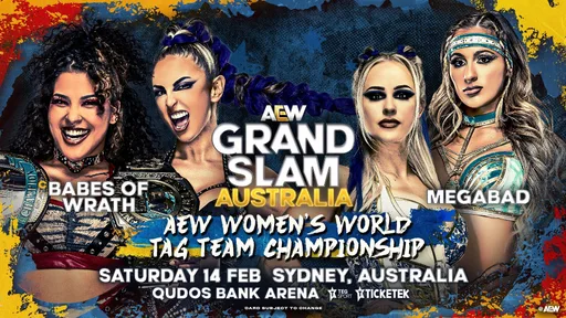 At AEW Grand Slam Australia on February 14, 2026, inside Qudos Bank Arena in Sydney, the spotlight was firmly on the AEW Women’s World Tag Team Championship clash. Willow Nightingale and Harley Cameron, collectively known as the Babes of Wrath, successfully defended their titles against Megan Bayne and Penelope Ford. The bout ran just over twelve minutes, with the champions battling through a physical challenge to retain in front of a lively Australian crowd.