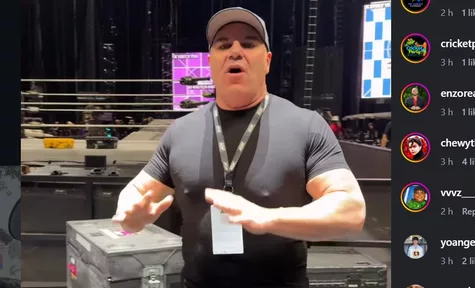 The video briefly highlighted the completed wrestling setup, including the ring, entrance ramp and lighting rig now in place for the event.