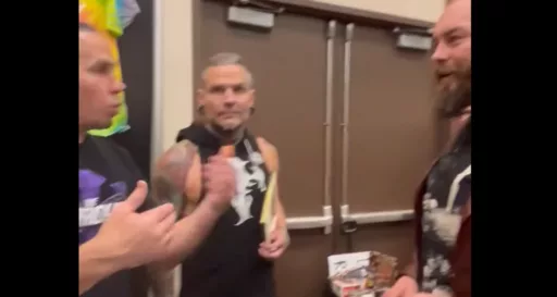 Things never turned physical, but the energy shifted quickly as both teams went face to face again. Vincent kicked things off, reigniting the back and forth, while Matt Hardy stayed focused on the fans despite the interruption.